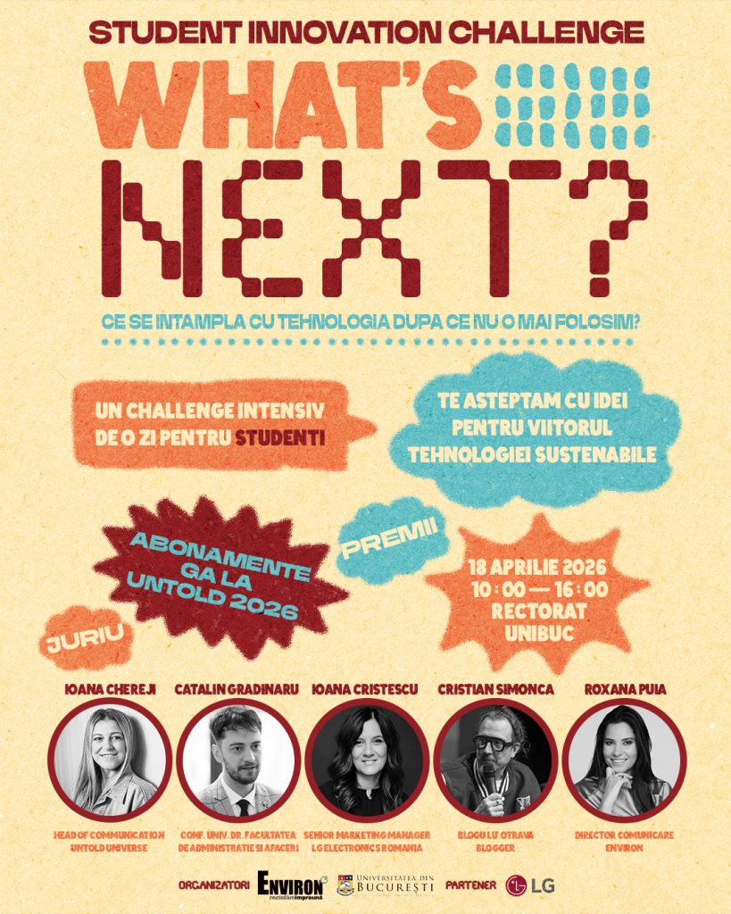 La finalul zilei, vei avea ocazia să susții proiectul în fața unui juriu de specialitate, iar membrii echipei câștigătoare vor fi premiați cu o experiență completă la UNTOLD 2026 (bilete + cazare + transport asigurat).